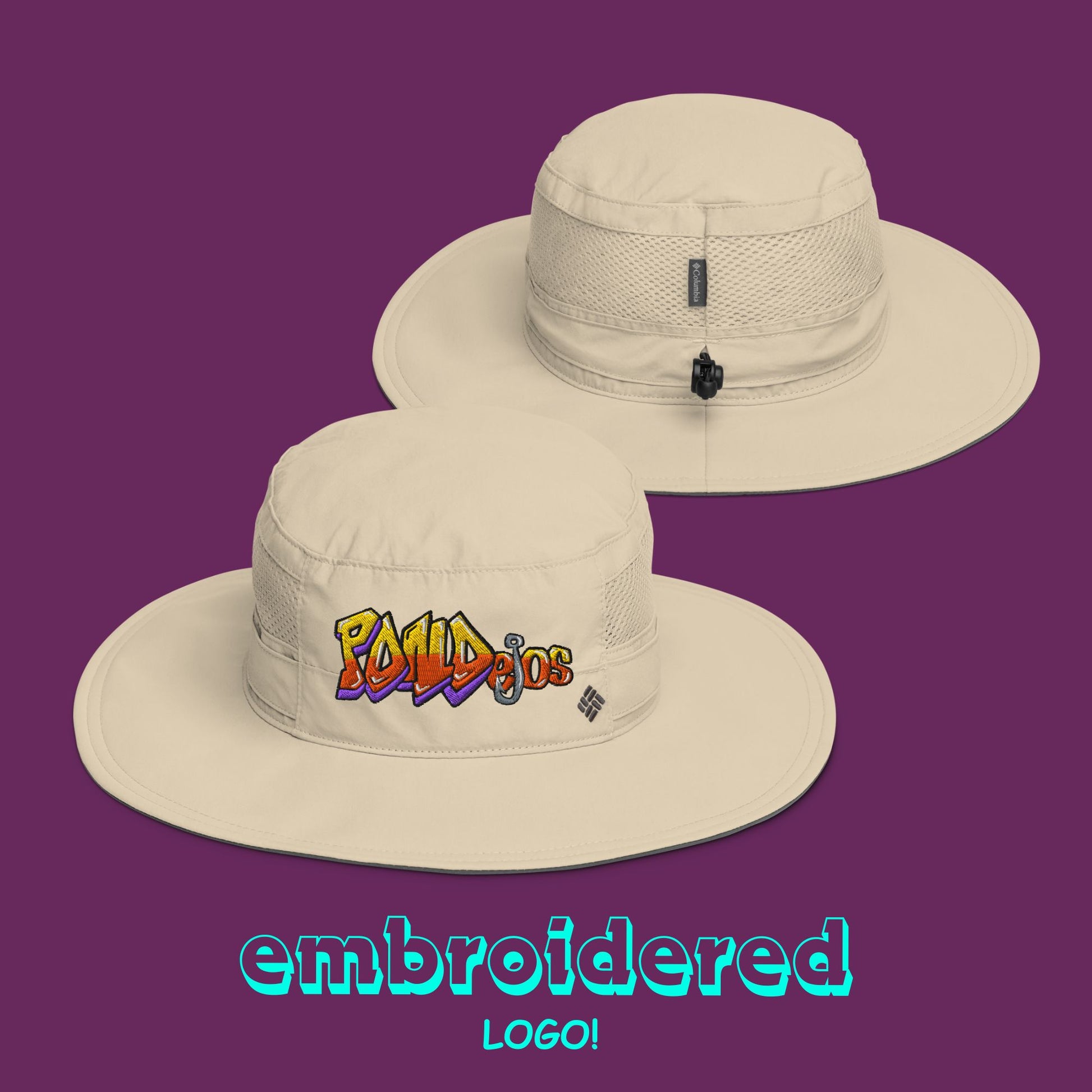 Stay comfortable and protected when fishing, hiking, or gardening. This Columbia hat features a high-tech sweatband, mesh vents, and wide brims made from a special fabric, all designed to keep you cool in the sun. Combine it with a PONDejos tee!